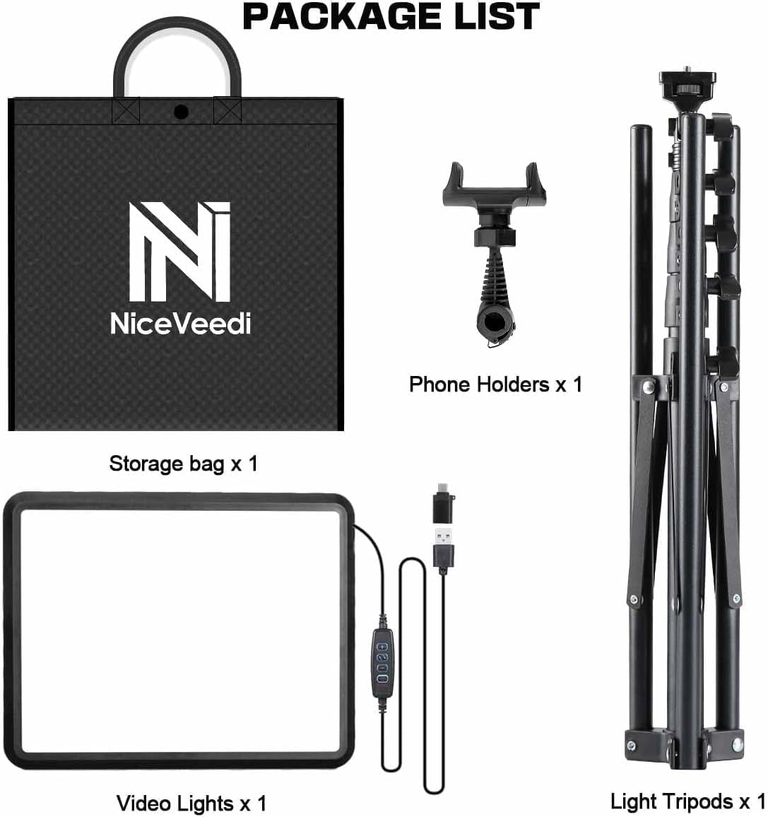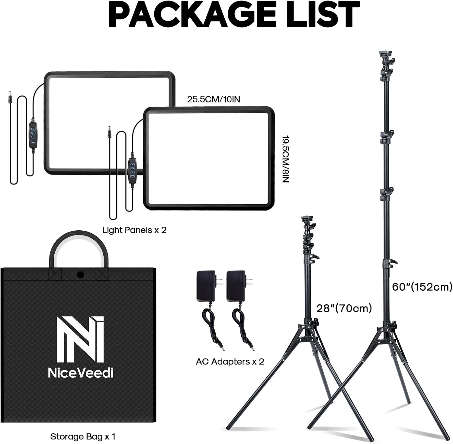 - 【Package List & Customer Service】There will be 2 LED studio light panels with cable. adjustable tripod stand for each light panel, 1 user manual, 1 storage bag, 2 AC adapters. Whatever issues you meet during the usage or any defects arise, rest assured that we are here to assist you.