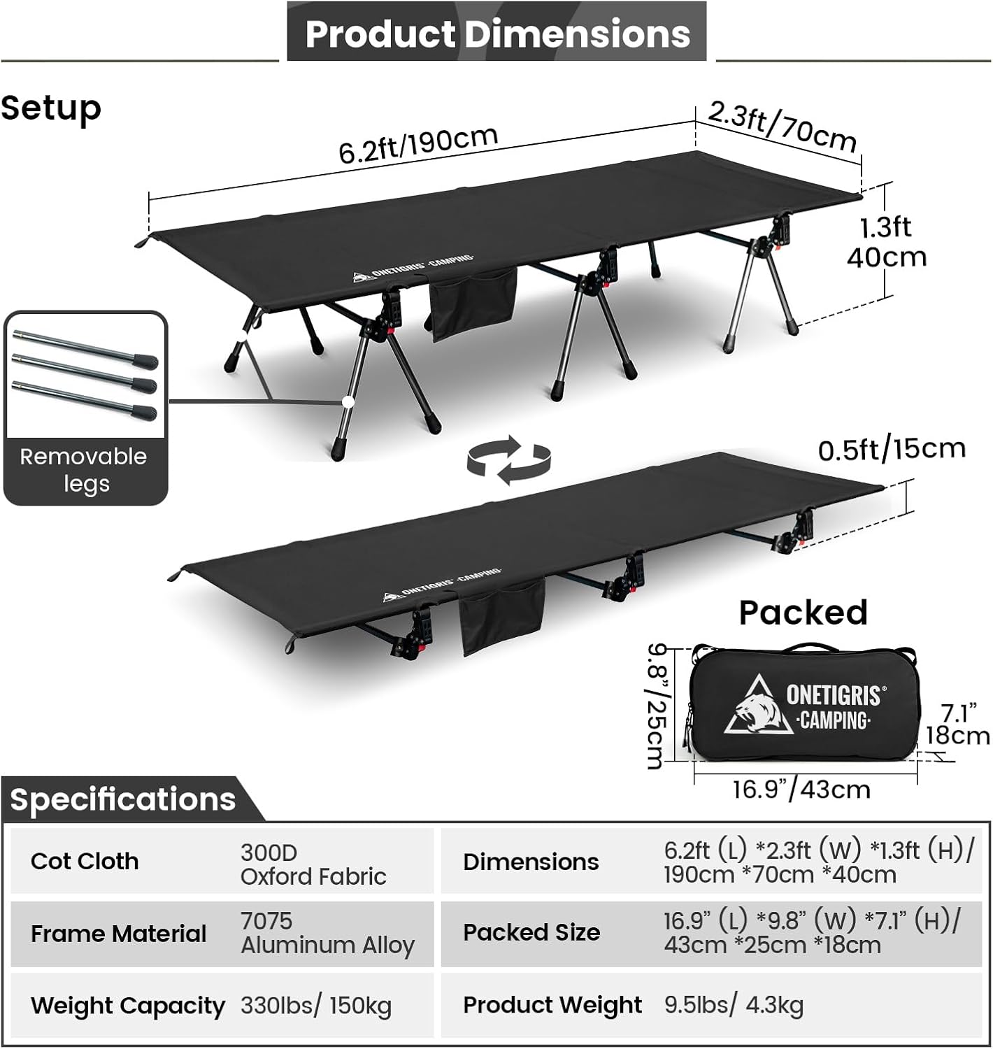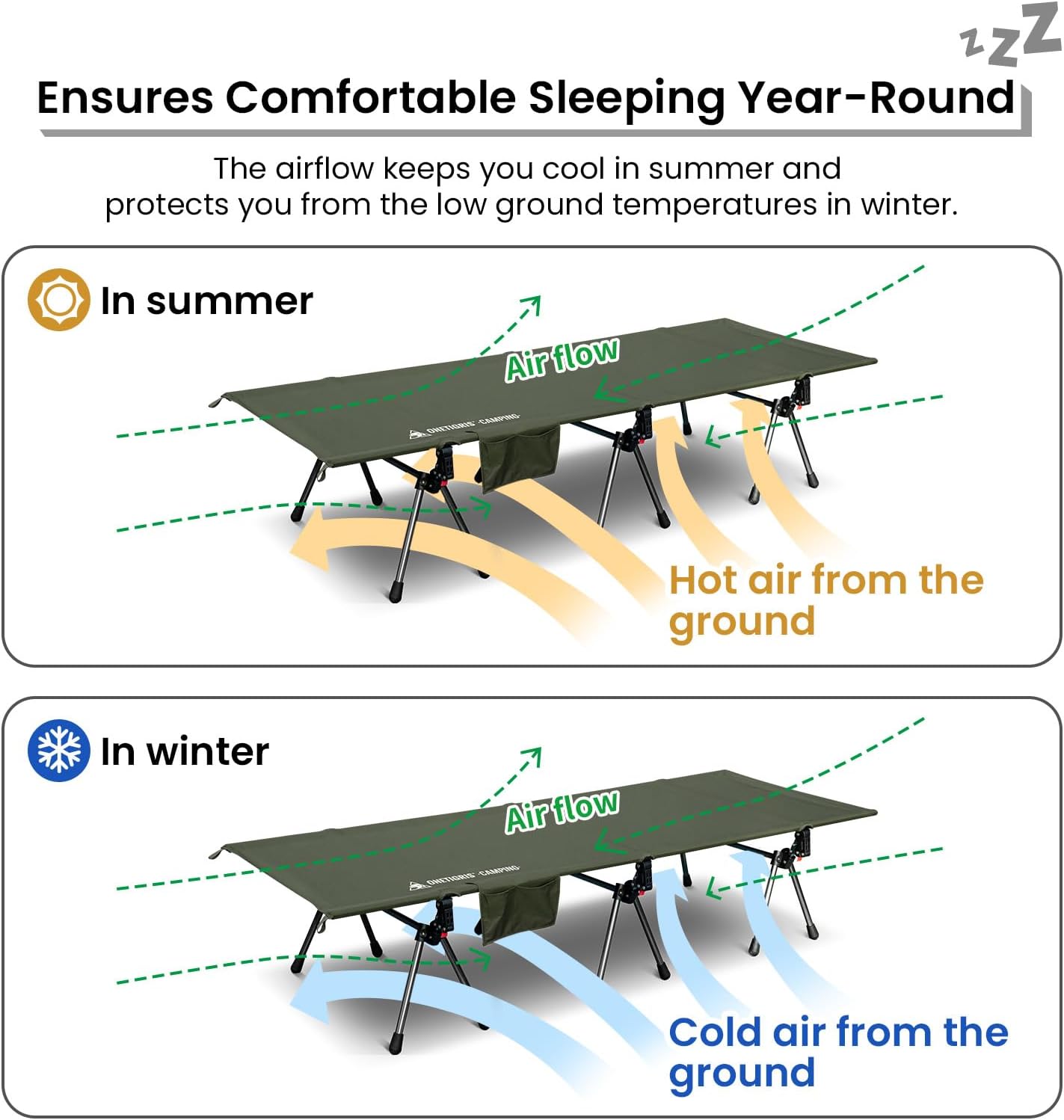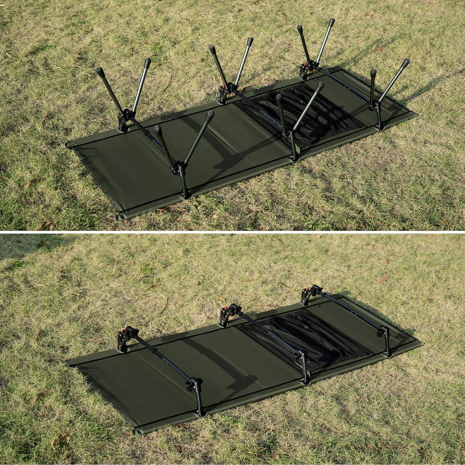 - โ ๐๐๐๐๐๐ฉ ๐ผ๐๐๐ช๐จ๐ฉ๐๐๐ก๐ โ Our camping bed provides 2 height options with the 12 extending legs, 15.75โ (40cm) for a higher heigh, perfect to use on grass or muddy/ damp ground, or as a bench to sit on; Lower 5.9โ (15cm) height to use as a tent cot or on solid ground, save your back from sleeping on the rough or cold/ wet ground for the best outdoor sleeping experience