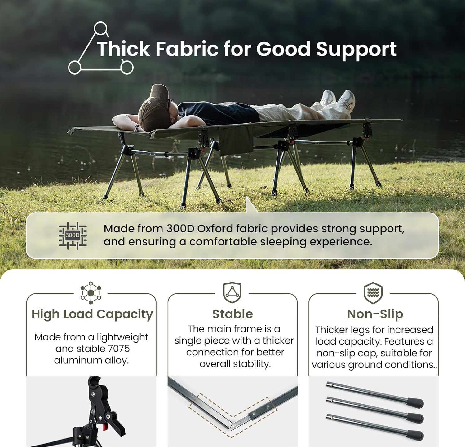 - โ ๐๐ฉ๐ช๐ง๐๐ฎ ๐พ๐ค๐ฃ๐จ๐ฉ๐ง๐ช๐๐ฉ๐๐ค๐ฃ โ This folding cot is built with 300D Oxford Fabric cloth makes it heavy duty, rip-stop & water resistant, aircraft-grade 7075 aluminum bars and legs strongly support the cot from overturning while sitting and sleeping, sturdy and stable enough to support up to 330lbs (150kg)