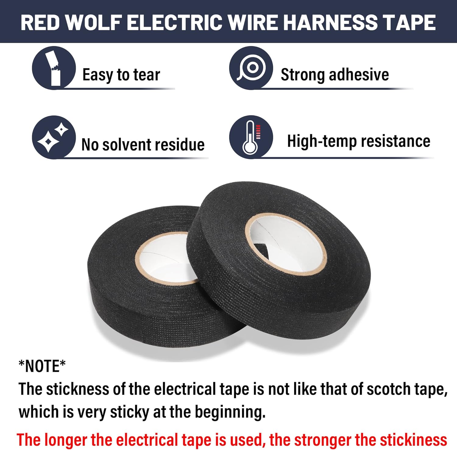 - Specification: A set of 5 rolls wire harness cloth tap; SIZE: Each roll black electrical harness tape is 50 FT long and 3/4 inch wide; It is work for your different daily needs in diversified use scenarios